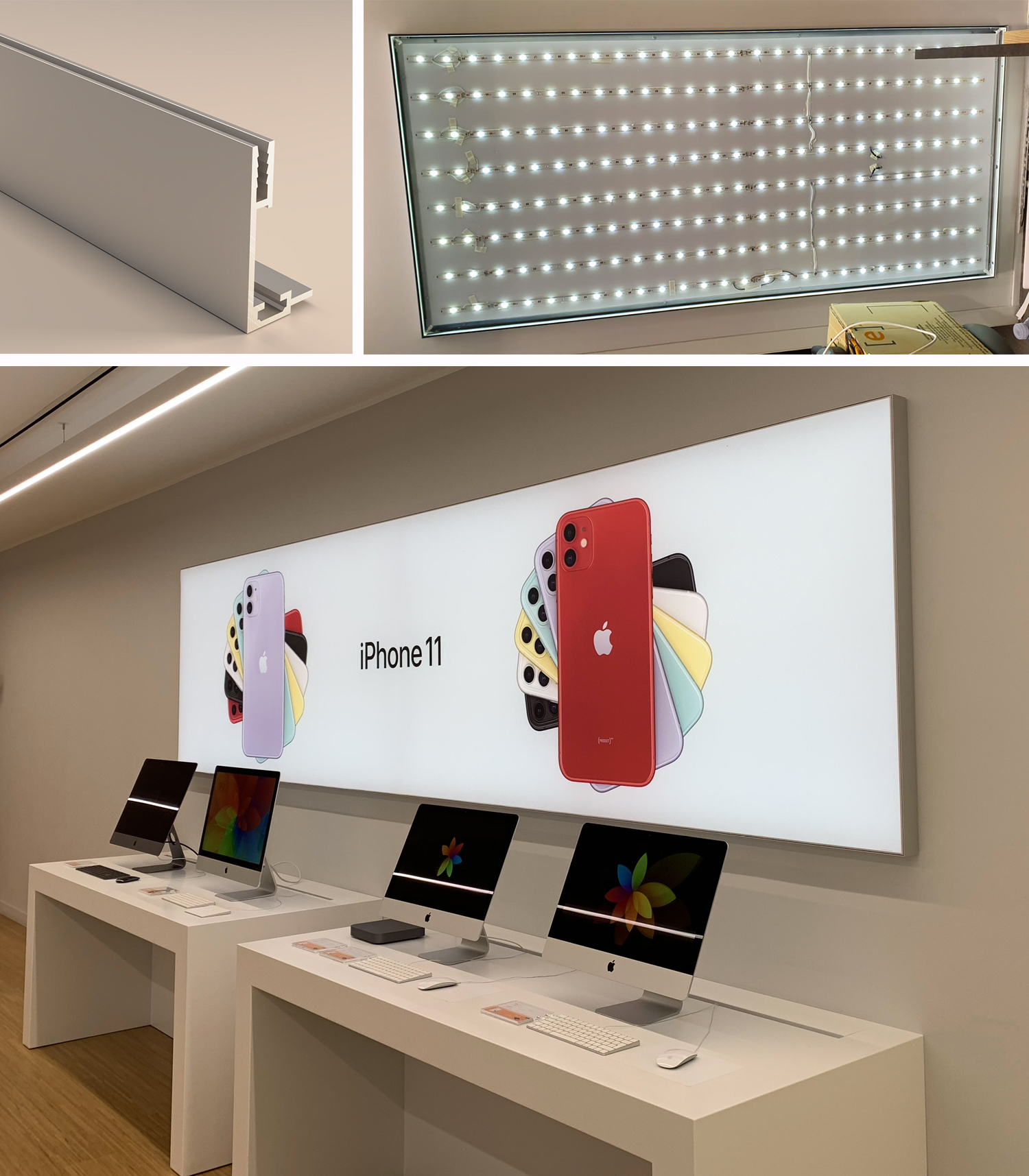 Il profilo Valet Light Box è studiato specificatamente per realizzare cassonetti luminosi monofacciali retroilluminati con tecnologia Led.