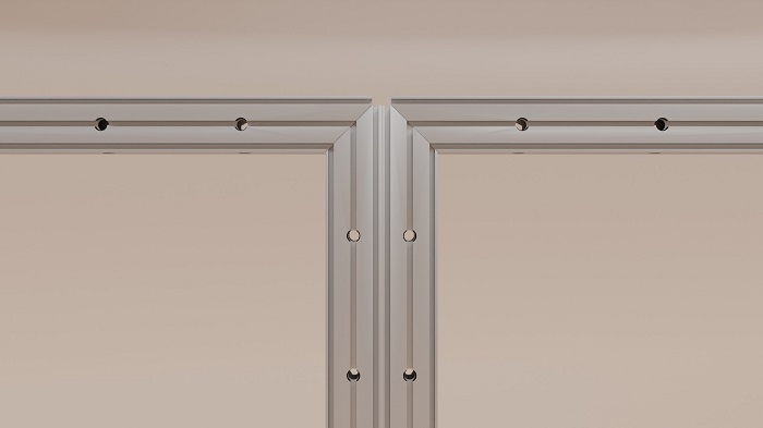 Le forature sono predisposte per fissare in diverse combinazioni i telai tra di loro. La risposta a ogni esigenza di spazio e alla creatività progettuale.