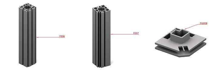 I 6 elementi base del sistema 6ALU sono realizzati con il profilo F006 e F007 con lo spessore di soli 40 mm.
