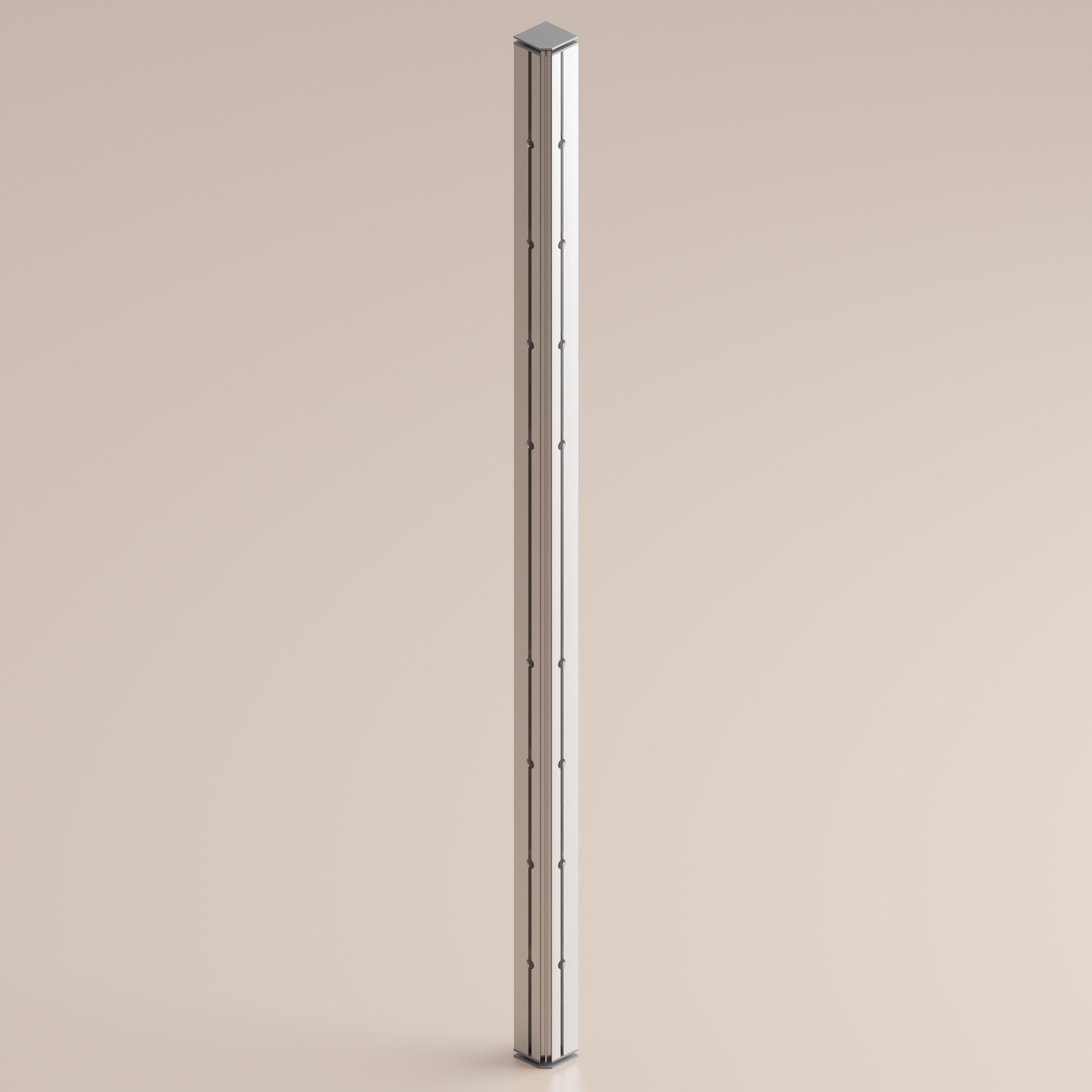 Lungo il telaio sono presenti dei fori per poter unire con viti M6 i diversi telai in tutte le combinazioni possibili che si possono presentare in un allestimento fieristico.