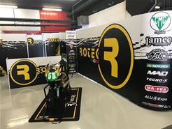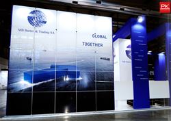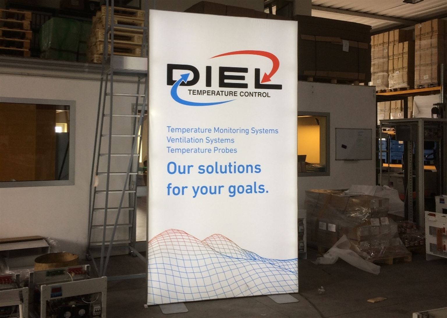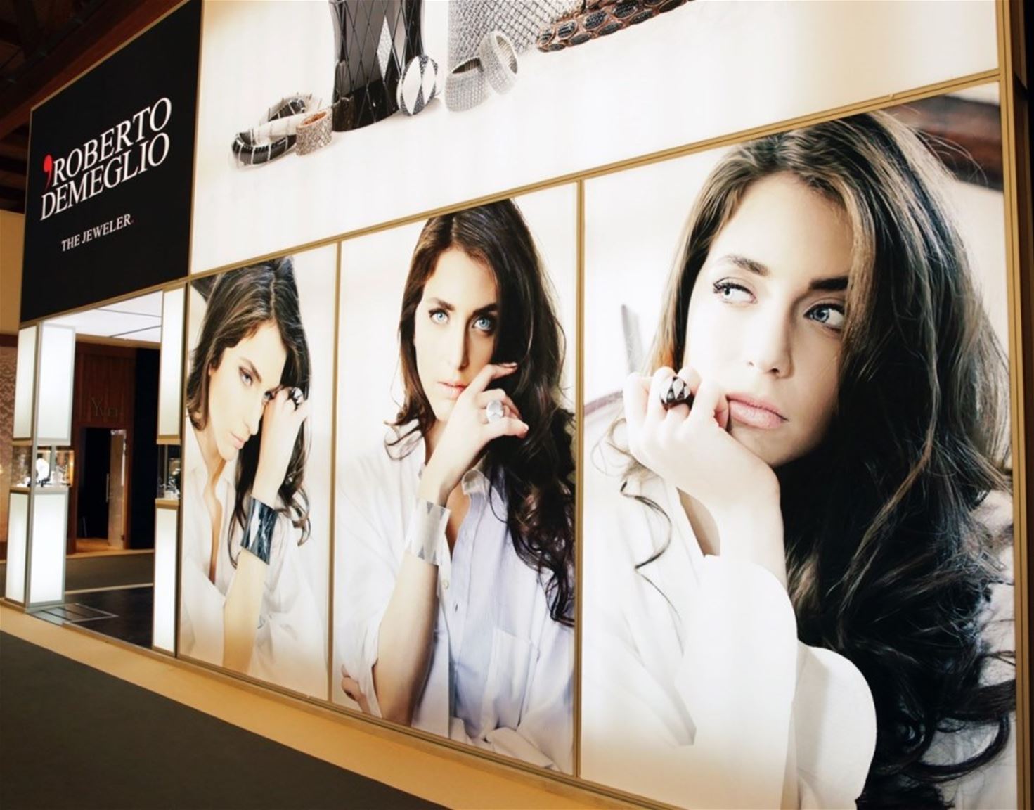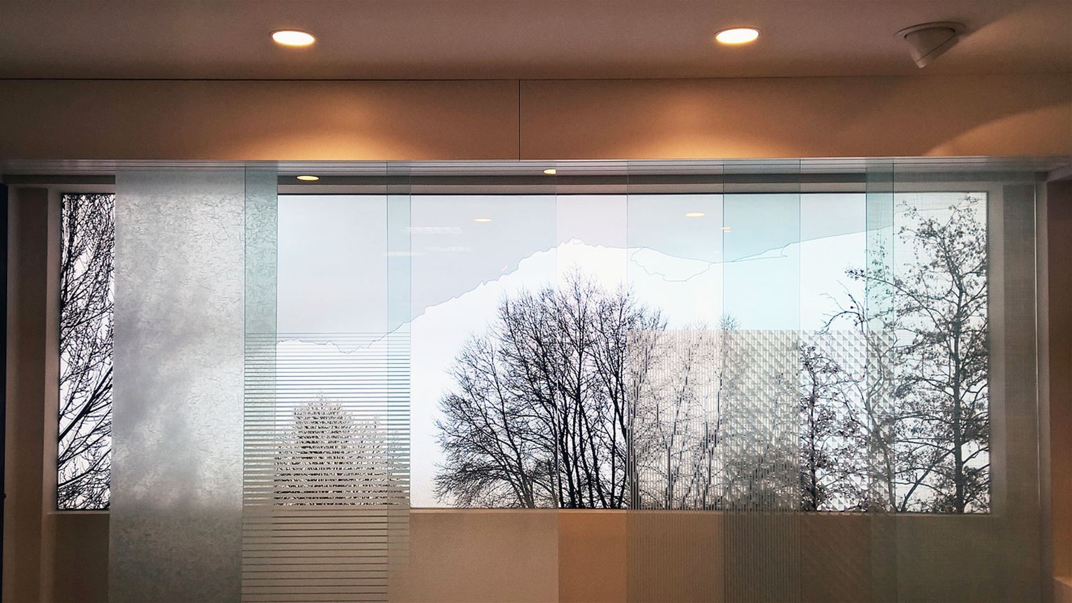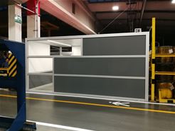 Portoni scorrevoli con F006 e F007 con grafica in tessuto