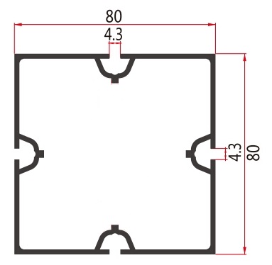 Profilo quadrato 4 vie 80 mm (Lunghezza barra 600 cm)