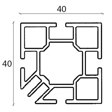 Descrizione: Profilo in alluminio per fissaggio TexFix a sezione quadrata 40 mm angolare cave per inserimento strip siliconica a cui cucire il supporto digitale in tessuto idoneo per realizzare cubi e parallelogrammi.