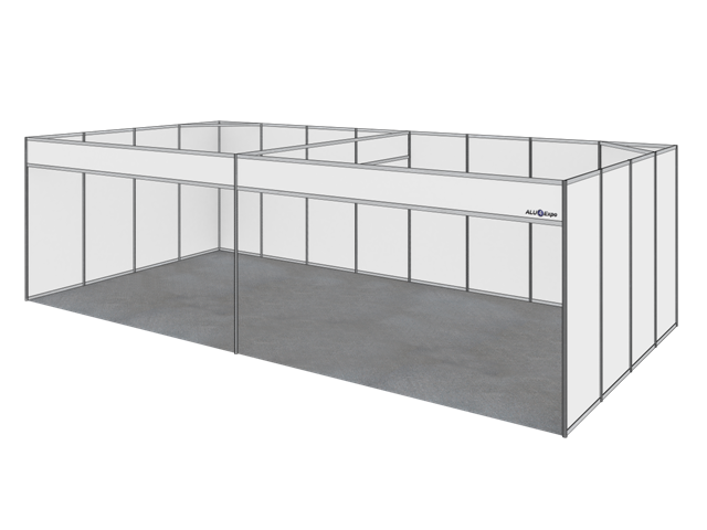 Stand Modulare 8x4 m - 1 lato aperto con certificazione per uso fieristico pronto per il montaggio.