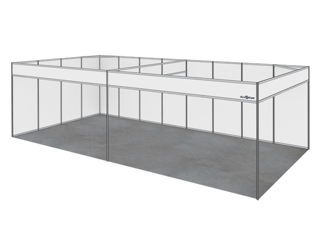 Stand Modulare 8x4 m - 2 lati aperti con certificazione per uso fieristico pronto per il montaggio.