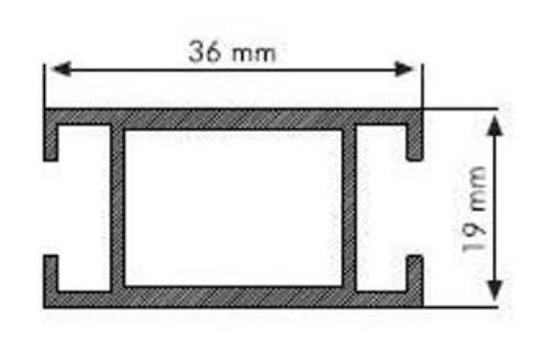Profilo in alluminio ad H da utilizzare come traverso di irrigidimento e rinforzo strutturale all'interno di cornici di medio/grandi formati realizzati con i profili ACE, DAME e KING (sezione profilo 36x19 mm).