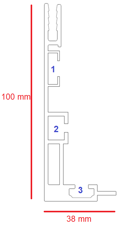 Profilo in alluminio DAME LIGHT BOX monofacciale per realizzare cornici per il supporto tessile della stampa digitale (Sezione profilo 100x38 mm - Lunghezza barra 605 cm).