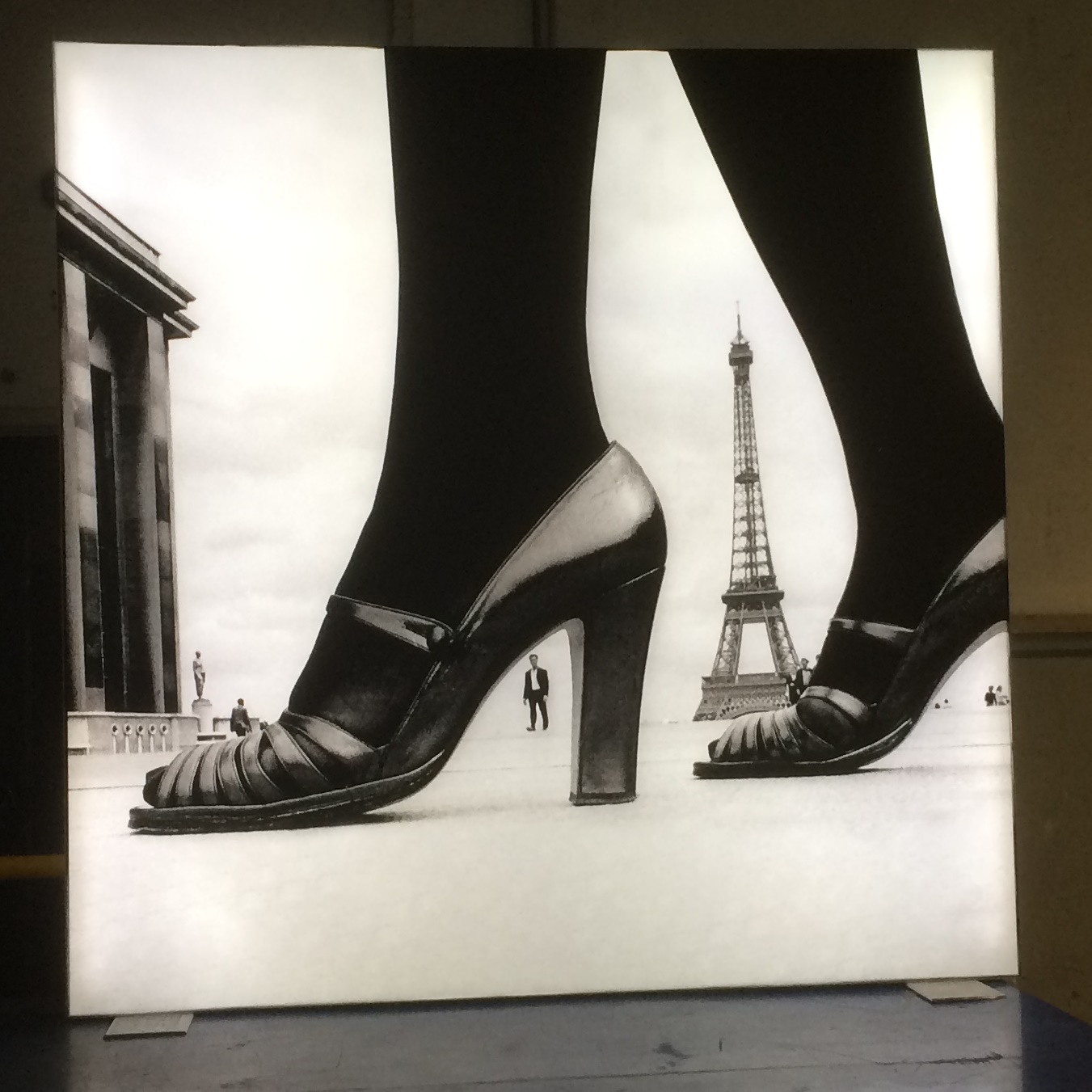 TOTEM WALL Luminoso è un espositore bifacciale retroilluminato con luci LED, dotato di basi in ferro che lo rendono autoportante.
