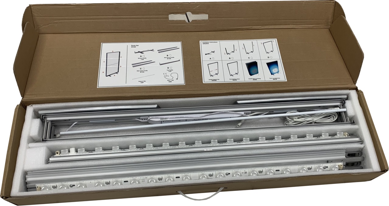 Il montaggio della grafica (non inclusa nel kit) deve essere realizzata su tessuto backlite con cucitura di strips in gomma perimetrale.