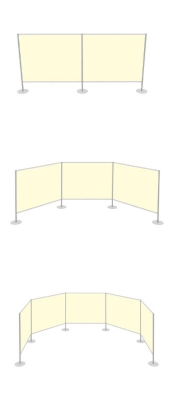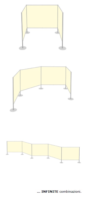 Una delle principali qualità del Wall Banner è la semplicità modulare: combinando tra loro piantane (1) e traverse (2) non si hanno limiti a ciò che si può realizzare nelle più svariate forme e combinazioni.