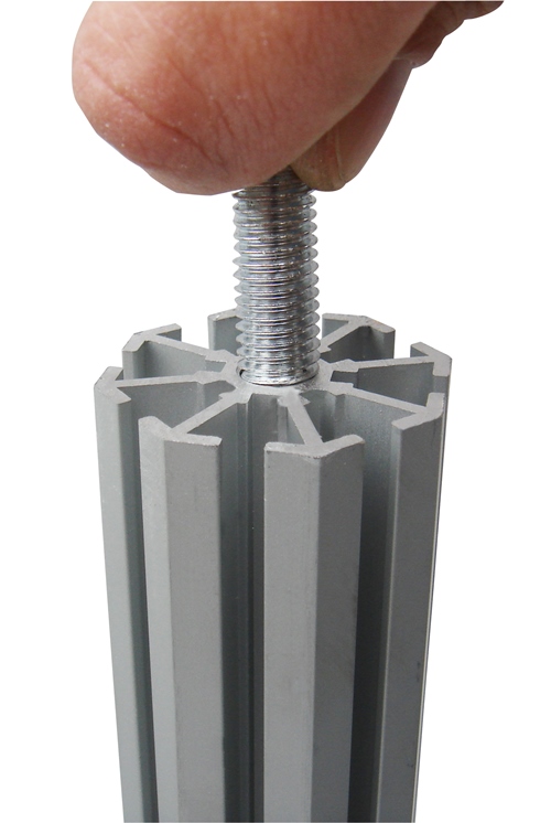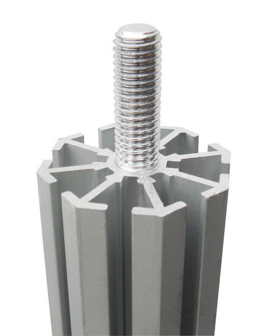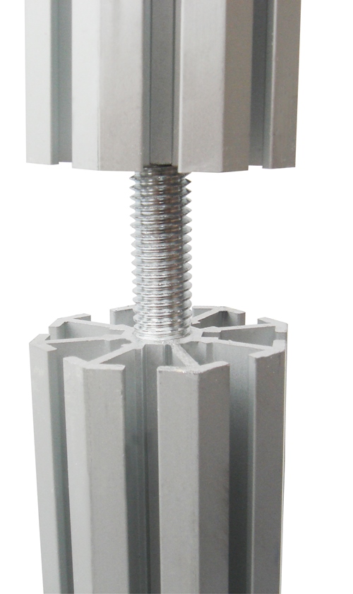Piantana con doppio filetto M10 per fissaggio vite base e connettore per giunzione con altri profili rendendo la piantana della misura desiderata e facilmente trasportabile una volta smontata.