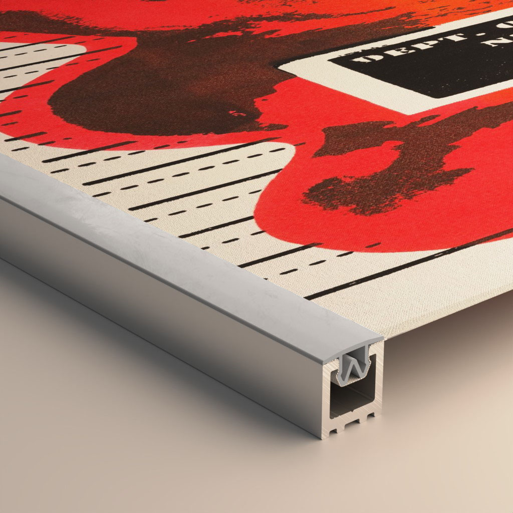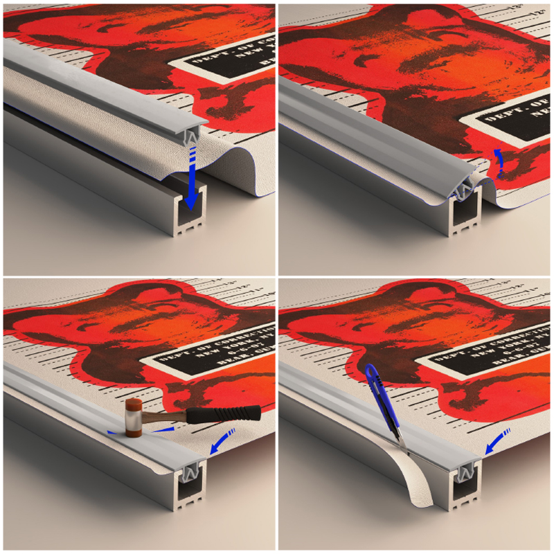 ll supporto grafico stampato su banner o tessuto viene inserito direttamente nel profilo alluminio, fissato a pressione con il PVC e quindi rifilato. In questo modo l’applicazione della grafica diventa estremamente veloce, semplificando sia l’installazione sia la preparazione dei file di stampa.
