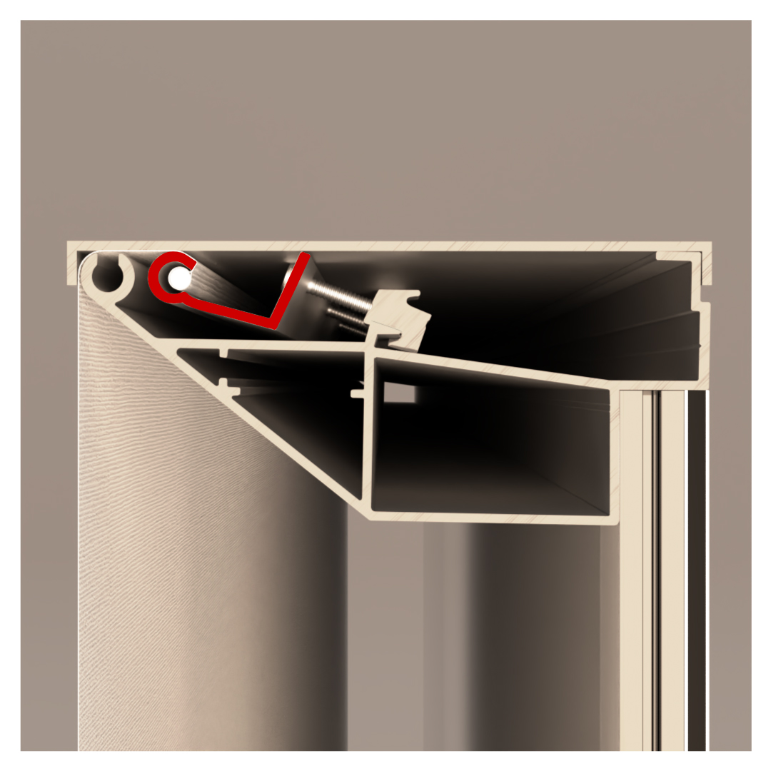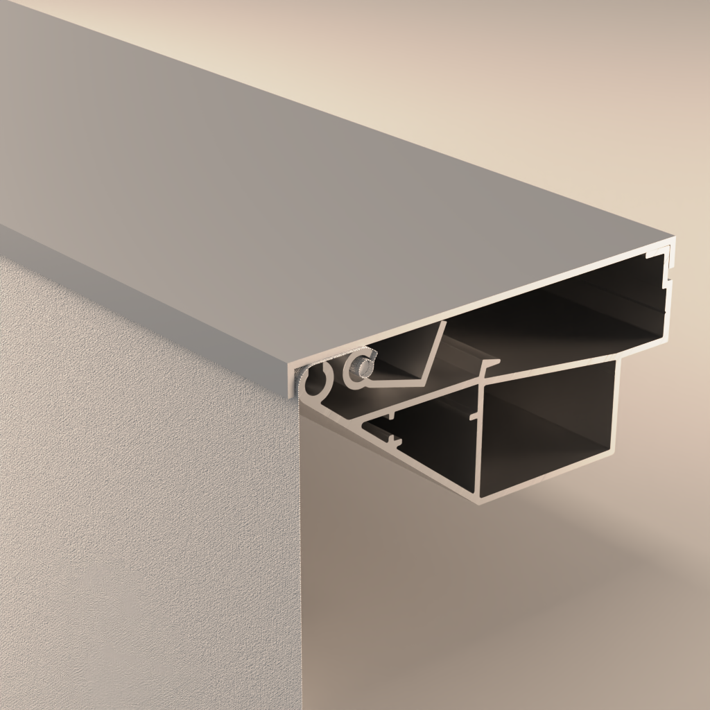 XTR – Extension Ricciolo di tensionamento: elemento in alluminio estruso nel quale si fissa il keder saldato o cucito alla stampa (ø max keder 5 mm). Successivamente verrà fissato mediante il morsetto di tensionamento XTM e porterà in tensione il supporto stampato.