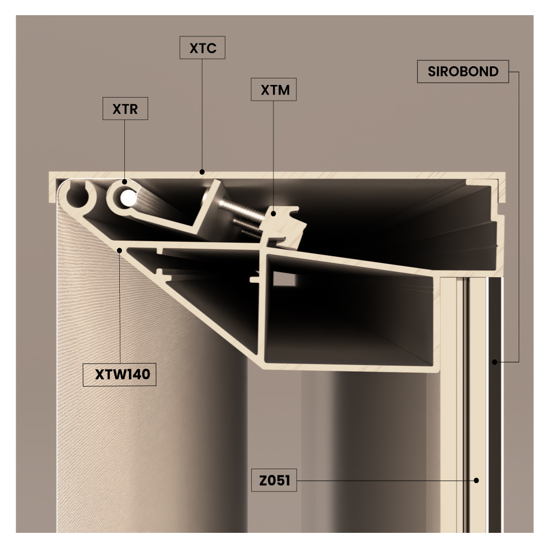 XTM – Extension Morsetto di tensionamento: si aggancia mediante accostamento tra XTW140 e XTR. Avvitando la vite M6 in acciaio inox, il morsetto tende il ricciolo portando in tensione la stampa con estrema precisione grazie alla regolazione micrometrica costante e perimetrale.