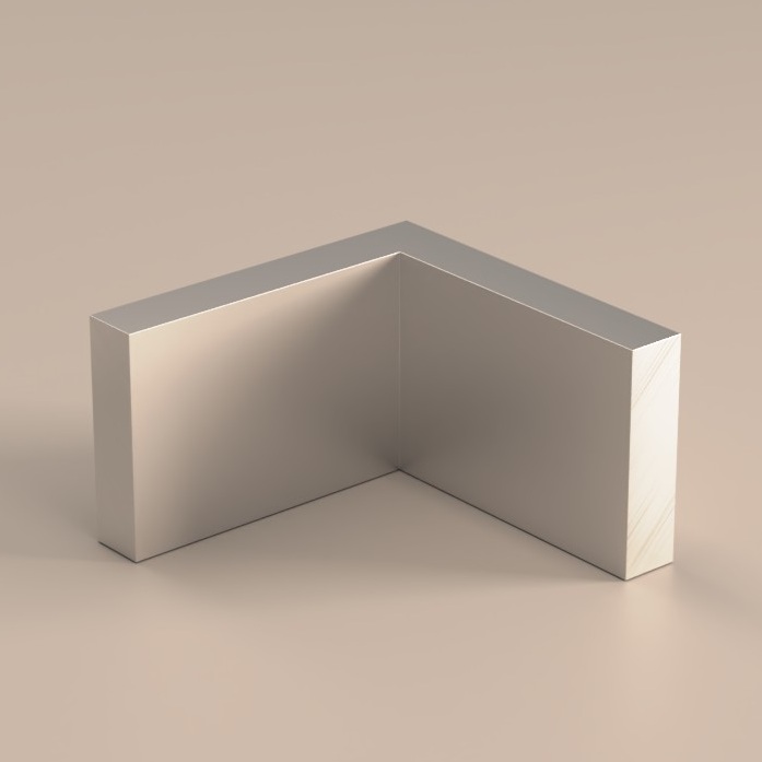 XTANG – Extension Angolare di giunzione: angolare in alluminio (dim 50x50x30x8 mm) per collegare a 90° i profili XTW140 tagliati a 45°. Il fissaggio avviene con vite autoforante.